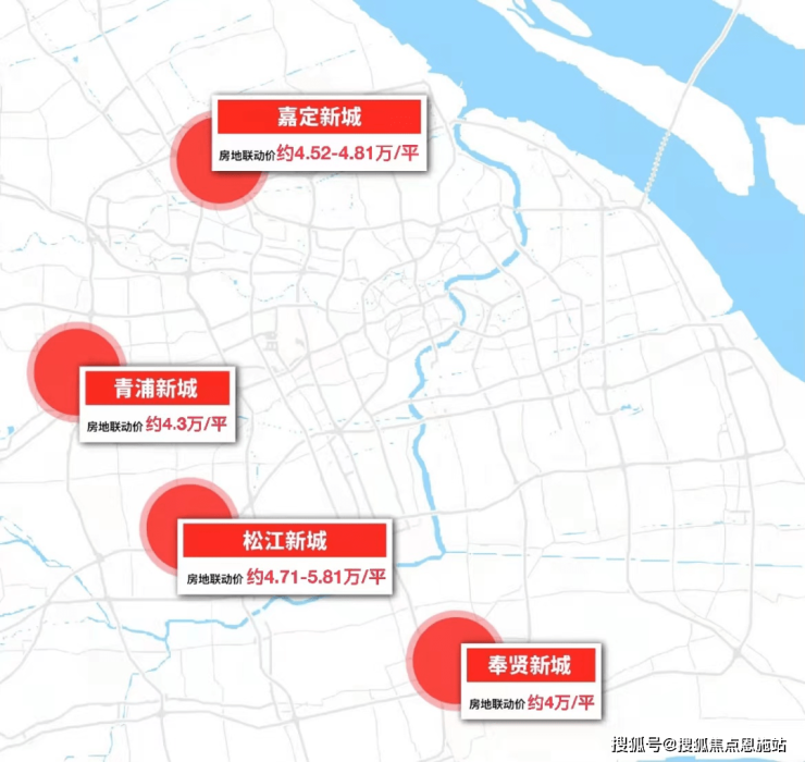 纵观上海五个新城新房价格的格局,除了偏远自成一体的南汇新城,其他新城的价格普遍在4万/㎡+,松江新城从发展程度,到配套资源、房价都是“领头羊”。