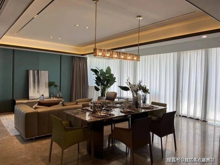 外立面以简约利落的线条,勾勒出动静相宜的现代感,质感稳重的石材、精致灵动的熏瓦,更增添了几分稳固质感。街巷静幽的立体庭院, 配合大面积的落地窗,室内空间更通透;