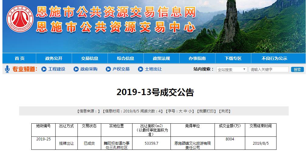 搜狐焦点恩施讯(编辑 刘云广)继金龙大道、高新区3宗住宅用地被两大品牌房企豪取后,土桥坝今日也传捷报,三孔桥社区1宗商业用地被恩施硒镇文化旅游有限责任公司、以8004万元价格摘得,土地出让面积53359.7平方米。