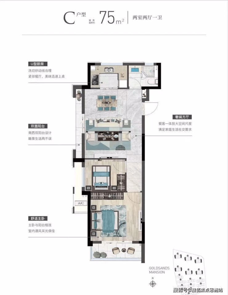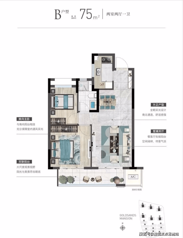 在售户型:41、75㎡(2梯6户)