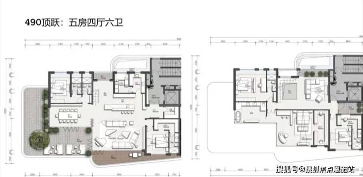 建面约330㎡户型图(5房2厅4卫)👇