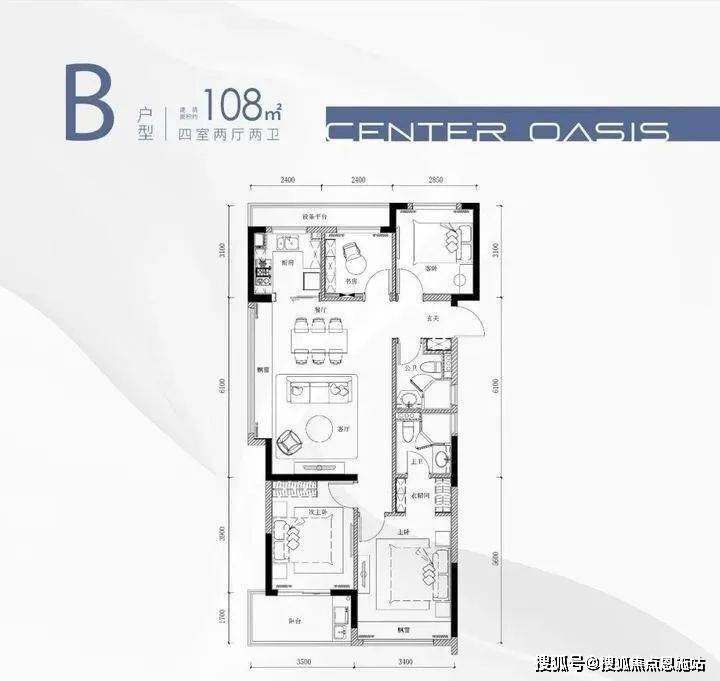 同样出色的, 还有建面约127㎡的四房,同样的三面采光全景视野和南北通透,更大的空间装载阳光清风和花草香。将通透的人生做到了极致。