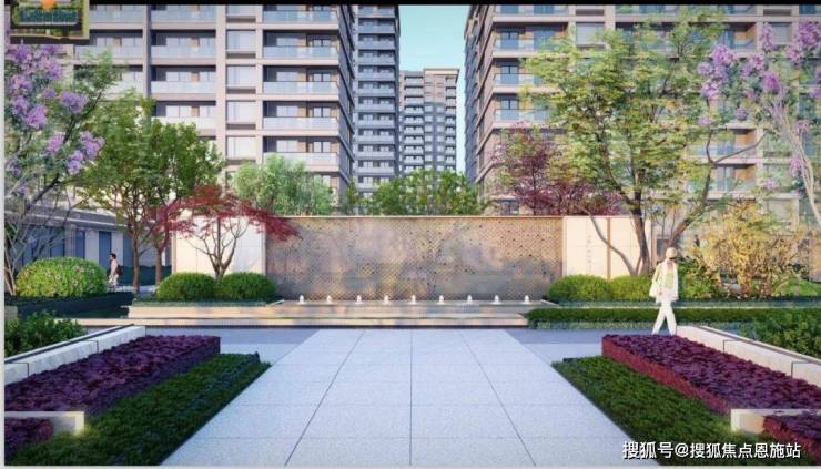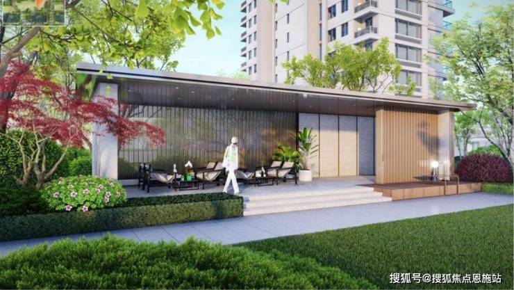 荷禹宸府的园林是灵动而有序的,怀拥着中心阳光大草坪和两大户外会客空间,满足邻里间交流、休憩、阅读等生活场景,让观景与社交都能惬意悠然。从主入口兼具仪式感和观赏性的中央水池景观开始,便引领着业主进入一个个精心设计的场景中。