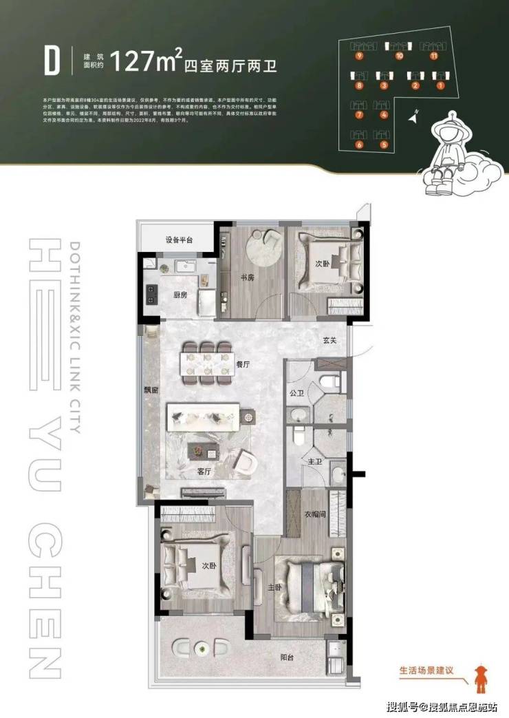 荷禹宸府的面积段,是当下市场最受欢迎的。 建面约96-127㎡,首套自住、品质改善皆相宜。最小的建面约96㎡三房两厅两卫,三开间朝南的同时,竟然还将阳台打造出阔绰的双开间。这在同面积段产品中,实属罕见。