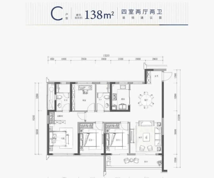 建面约138㎡四房两厅两卫户型,总价仅200万级,想要一步到位,这个户型绝对不要错过。
