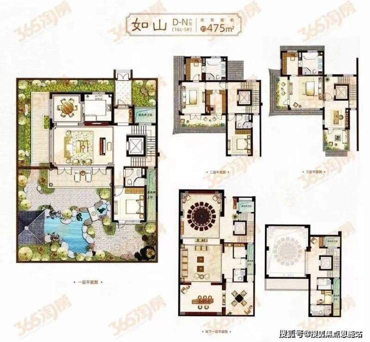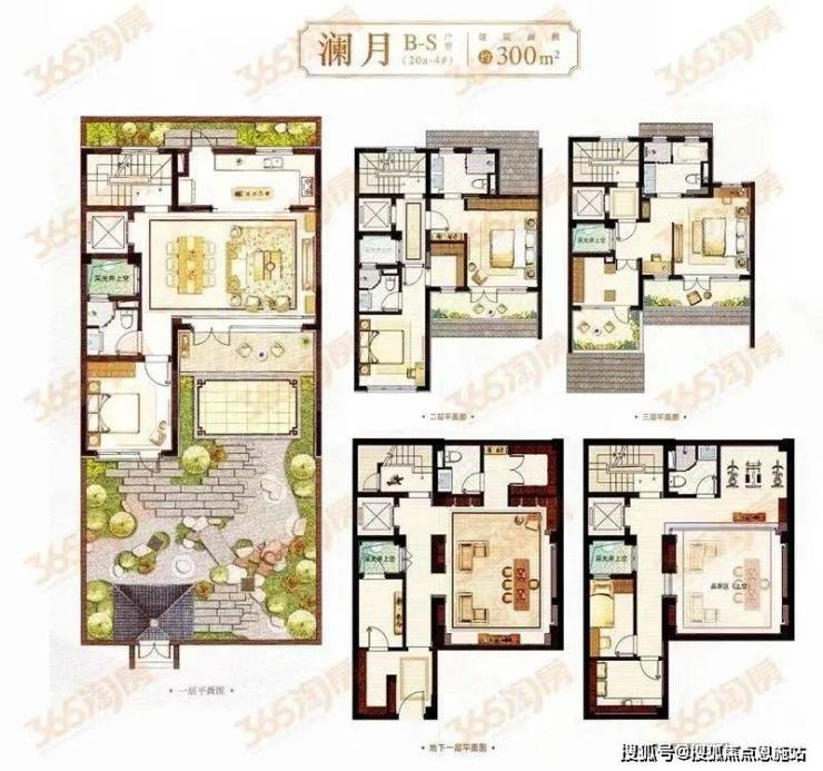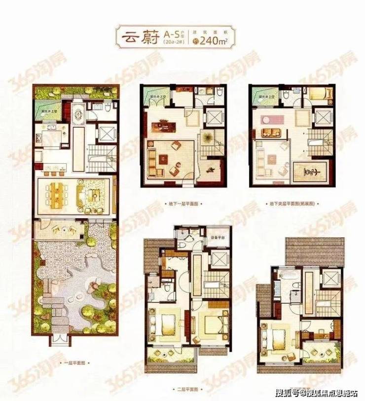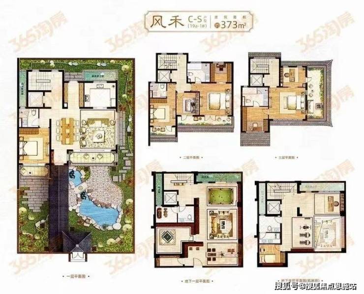 项目共有5种户型,建面约240、约300、约373、475、522㎡,