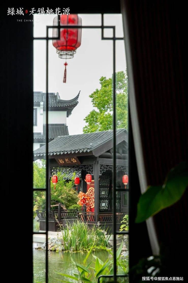 整个园林师法苏州退思园与无锡寄畅园,内部开辟了一座 近1300㎡的中心湖, 船舫、爬山廊、六角亭等绕水而构, 亭台楼阁、小桥流水,一步一景。