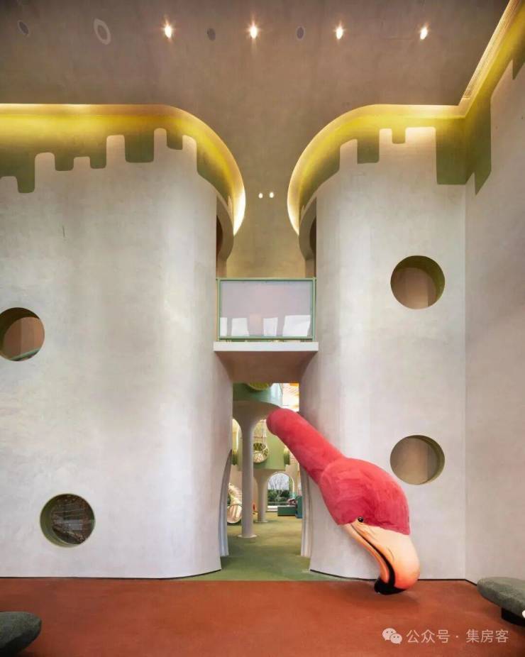 当然,在架空层最为出彩的,也不仅仅是“高度”上的简单突破,整体的功能规划也充满着大量的惊喜。在5号楼下的架空层,项目腾出空间做了一整层的超大童玩空间!整体面积超过480平米,根据孩子不同年龄阶段来设计功能不同的空间场景。
