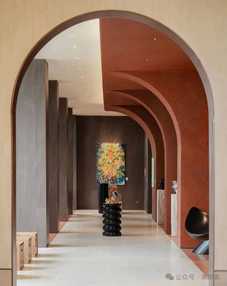 因为赶上了政策的好时代,知海棠是抬地新规后,之江第一个的落实的项目。空间“三折叠”:园林→架空层,再往上才是住宅,整个社区仿佛被托举在空中。为了这么好的政策机会不被挥霍,所以绿城反而绞尽脑汁去做的更多,比如在向下求索的垂直空间里,通过起伏和精心设计的步道系统,让人们可以身临其中参与互动,“一步一景”。
