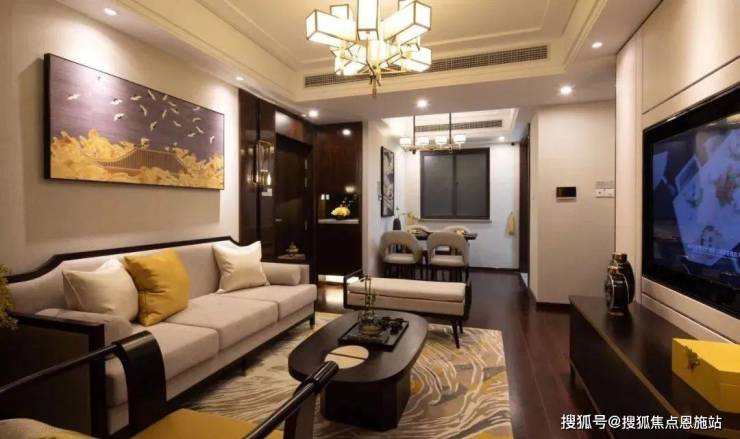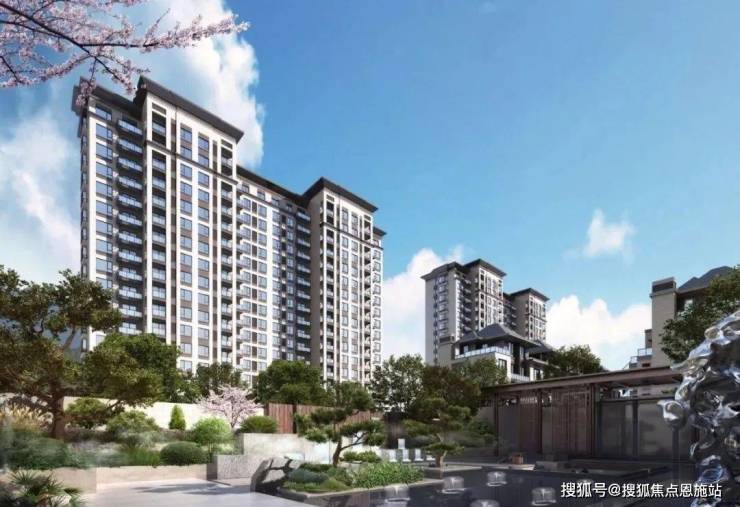 项目总体建筑风格是现代中式滨海风格,主立面材质以米白色真石漆为主,局部为沉香米黄石材。建筑顶部采用王府中式大挑檐,体现稳重端庄。入园为中心水景区,结合风雨连廊,营造出大面积的休憩空间。
