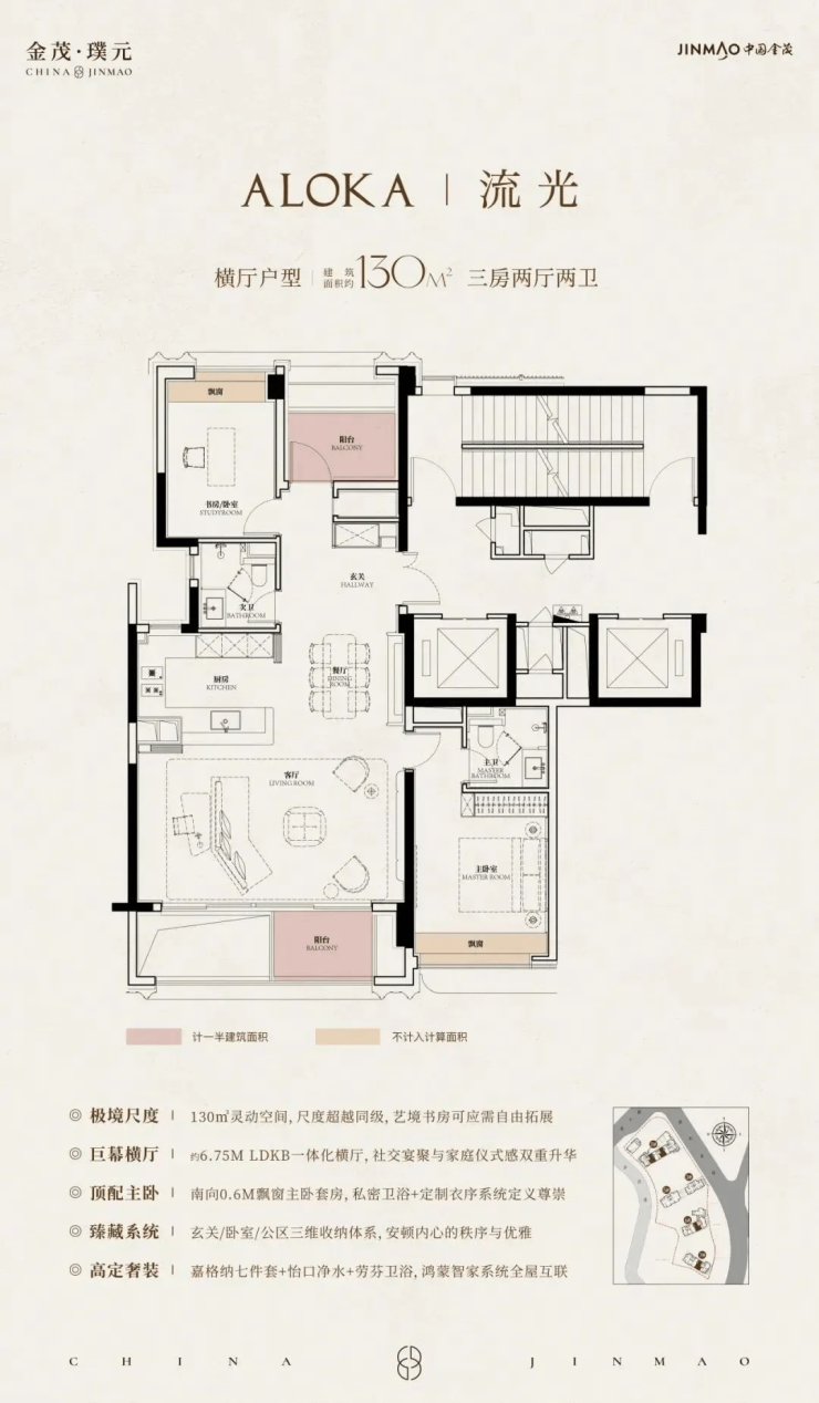 在建面约130m²户型中,金茂把每一寸面积都榨出了极致价值!
