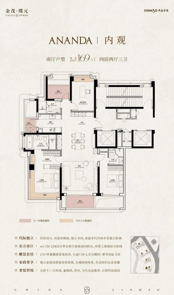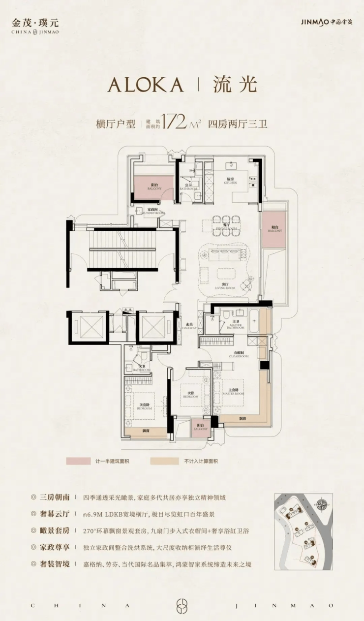 在建面约172㎡户型中,我们可以看到金茂对 “三代同堂” 生活方式的深刻理解!