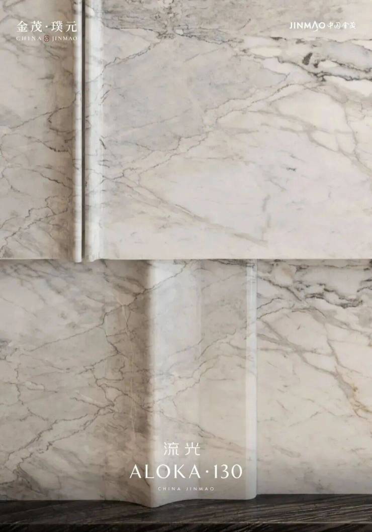 江南烟雨 奢石的背板,山水纹路若隐若现,搭配温润的 尼斯木 柜门、 香奈儿灰 的地面,高级感油然而生