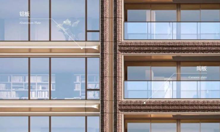 金茂璞元在建筑立面上实现了上海前所未有的全向艺术化。建筑四面采用同等考究的材质和语言,主体采用 铝板+玻璃+陶三种材质精工雕琢, 这种东西南北全立面住宅在上海极其罕见。