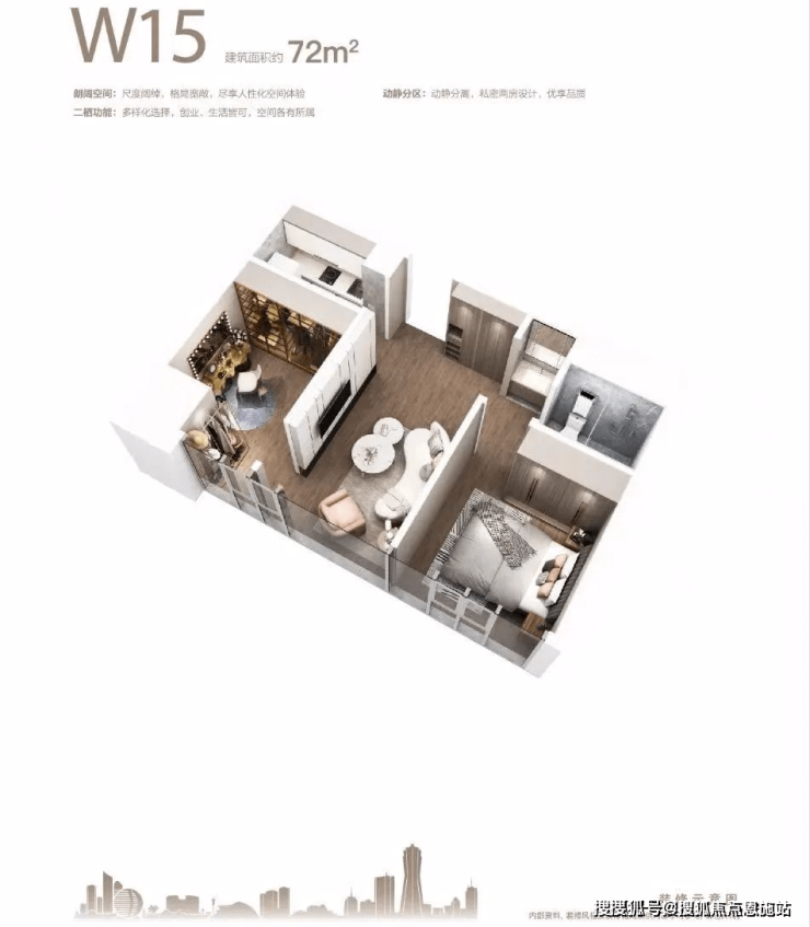 以引领时代的产品力 ,彰显国际一线生活格调建筑界奥斯卡“WELL金级预认证” ;水晶塔式世界建筑美学;五星级酒店入户大堂,层高约8.1米,营造归家尊崇体验;配备高速通力电梯,高区梯速6米/秒。