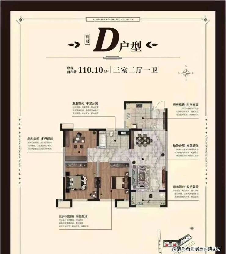110.10㎡,3室2厅1卫,拥有更好的采光,三开间朝南。