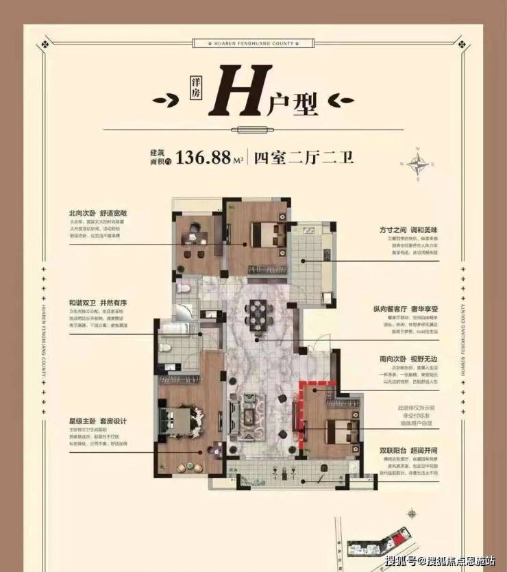 136.88㎡,4室2厅2卫,南向双阳台,主卧的空间更大,可以设置办公区域。