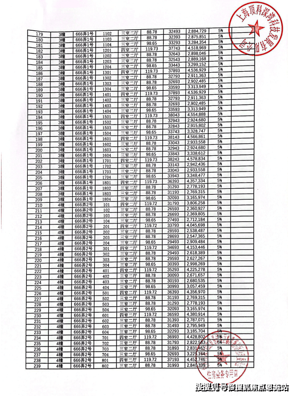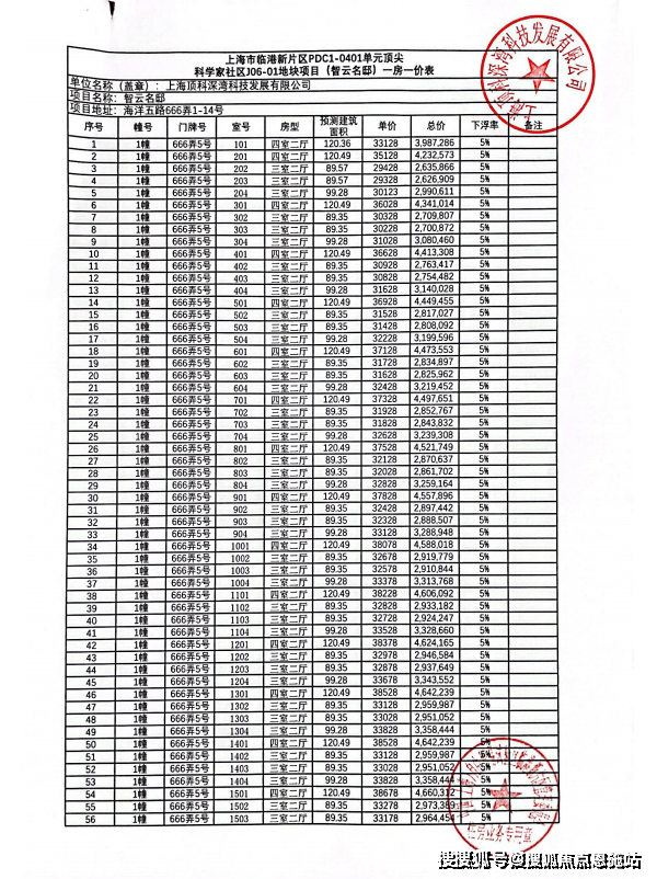 最后附上一房一价表: