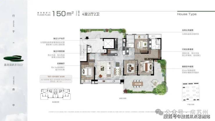 创新曲面转角院落,并实现全户型搭载“客厅-空中庭院”的主动线设计,整体营造立体墅式庭院生活场景。