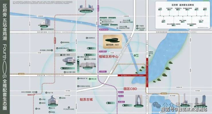 依托相城主城天然的地理优势,以环线快速路、隧道、地铁等立体交通主动脉为引擎,构建出相城区府中心、园区金鸡湖商务区、姑苏古城三大CBD交汇的“中心”坐标,并将全域高端资源纳入FourthOS.四代生态系统。