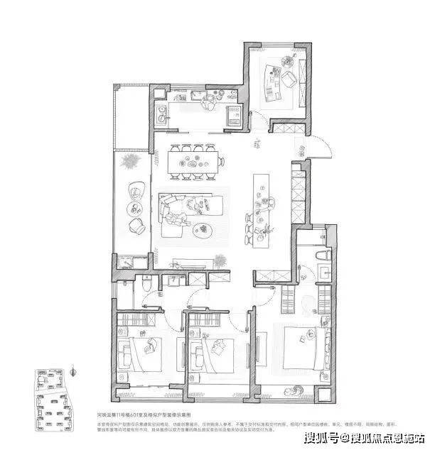 ▲147㎡四房两厅两卫:三开间朝南带飘窗,一房朝北,餐客一体带阳台,在空间布局上餐厅和厨房更加开阔,可自主规划的面积更多,无明显缺陷。