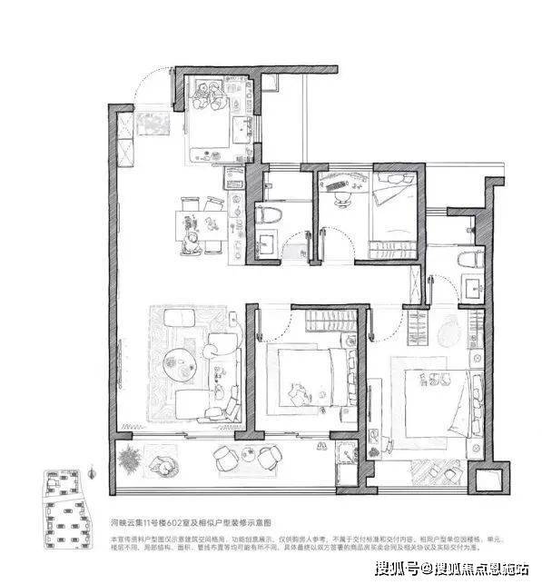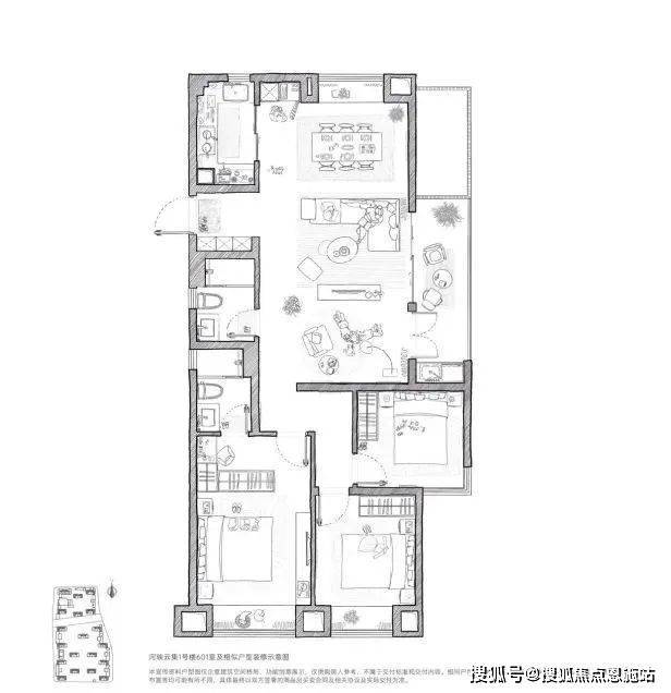 ▲128㎡三房两厅两卫:南向双开间设计,另一间卧室设计了东南开窗,128㎡的三房餐客连厅明显比107㎡要宽敞太多,客厅朝南的空间可设计成开放式书房。