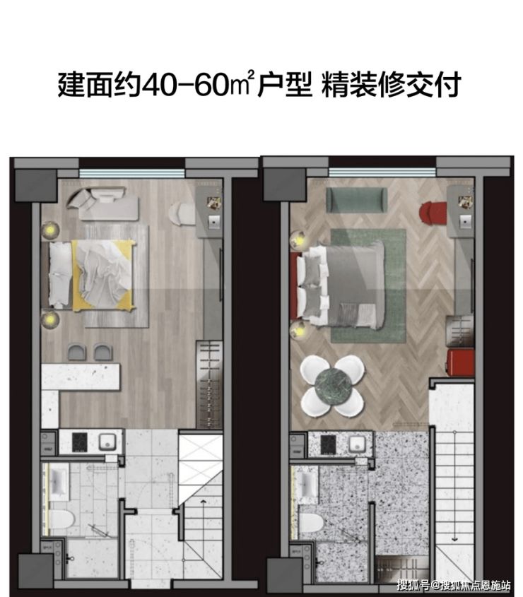 双入户,顾名思义就是把一套产品,设计成上下独立的两处空间,各自配备独立的功能分区,打破常规的产品理念,尽情发挥对空间的想象力。