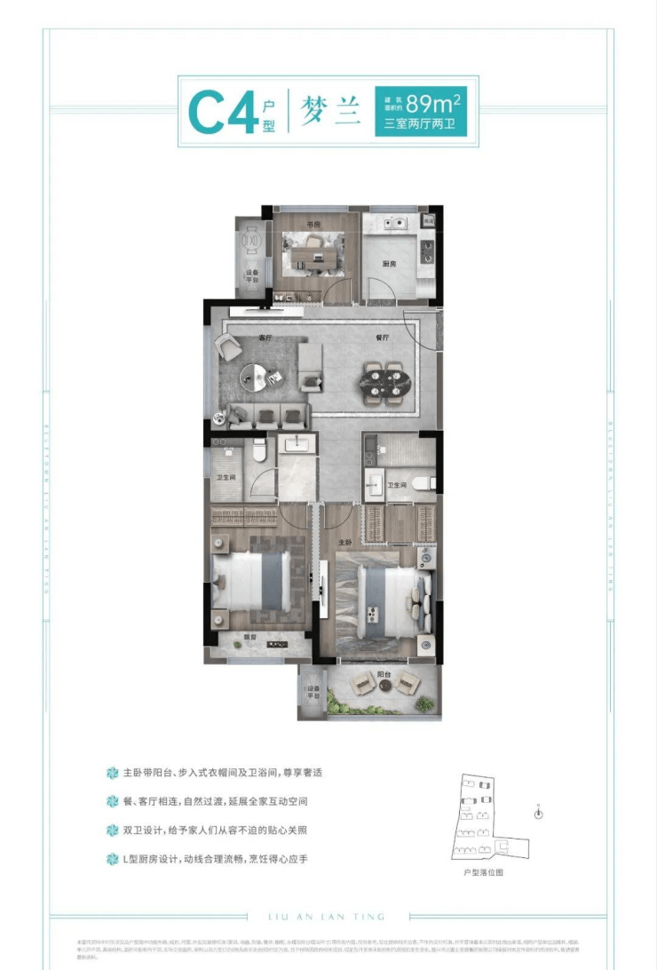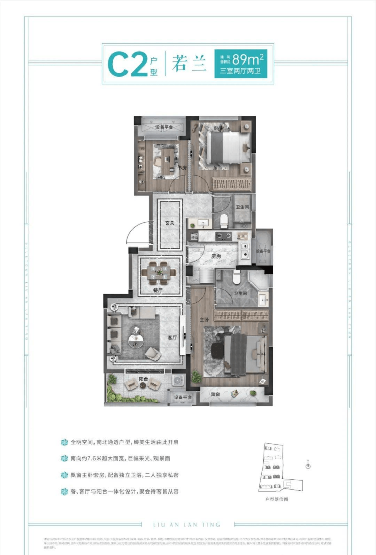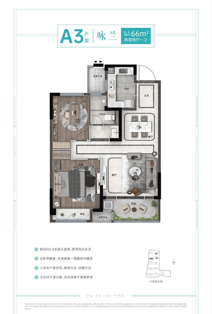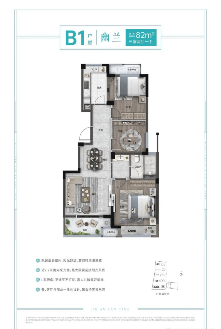 建面约65—115㎡人性化两房、三房,满足单身青年、新婚夫妻、三口之家、三代同堂多样人居所需。在有限空间里,最大化南向空间,并充分利用每一寸空间,把自然风光与空间完美结合。在这里,一阳台、一飘窗是标配,一体化双厅,更是承载家庭团圆、宾朋聚会的欢乐场。