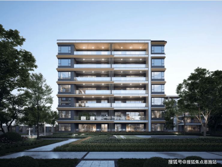 还比如洋房外立面首先选材上,以石材搭配同色系石材一体板、铝板线条,勾勒出挺拔轮廓;大面积玻璃幕墙亦是点睛之笔,让建筑拥有更轻盈通透的美感;