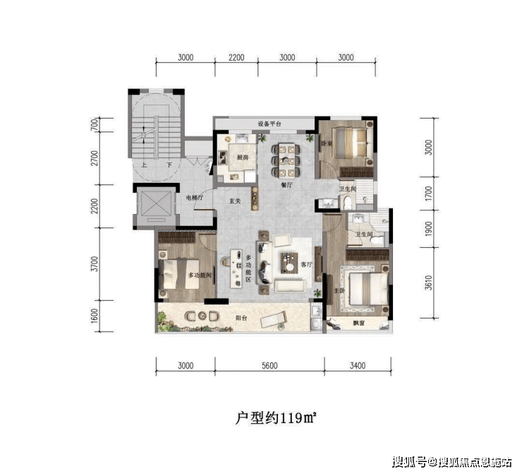 119方我们做到了12米面宽,其中客厅和次卧之间的8.6米距离更是无承重墙设计,对于业主后期在使用上和改造上提供了非常大的便利,这种设计成果在嘉兴也是非常少见的,所以这个户型目前也是在网上炒得沸沸扬扬的神户型。