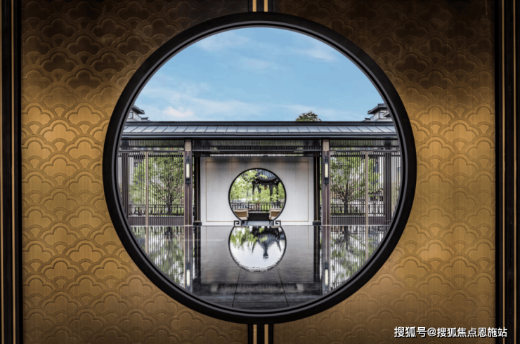仪式感的门头和四水归堂的回廊水庭,通常只出现在高档奢华酒店里。但在广宇·塘颂,这是它示范区的一部分,也是远景业主步行回家的必经之路。