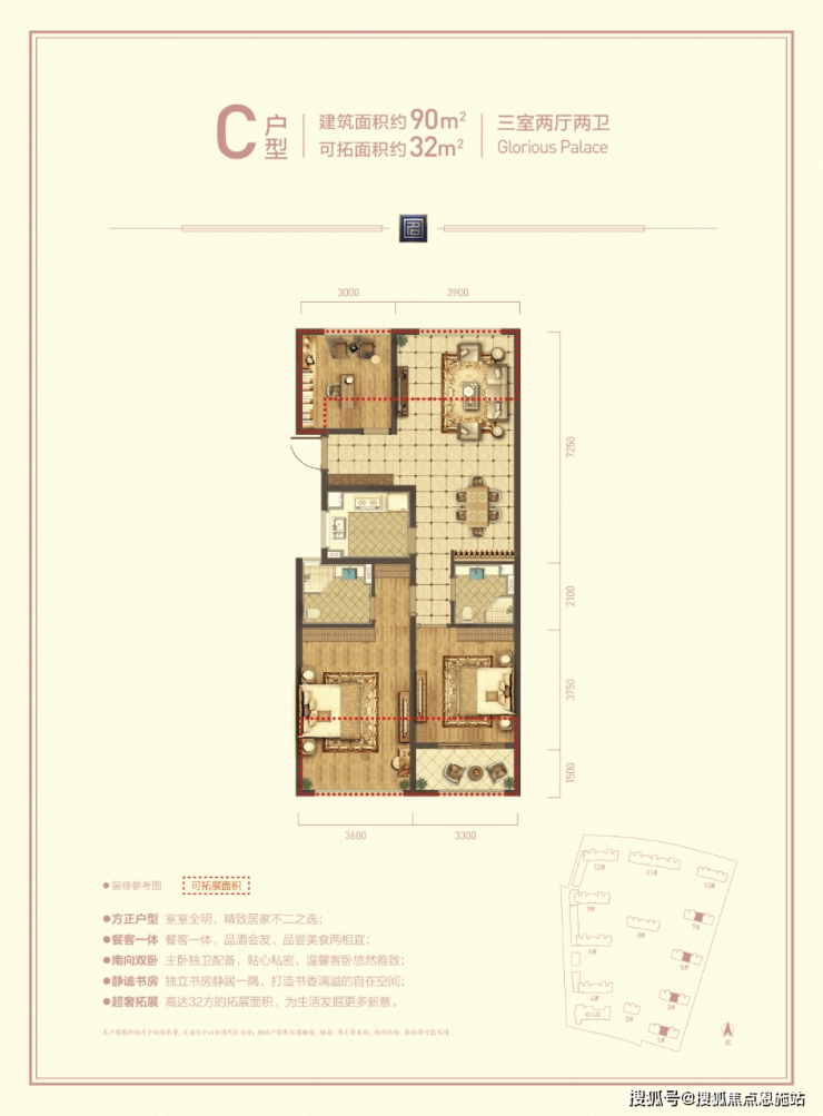 珍藏楼王加推,地铁5号线上绝版90方大三房,130方大五房户型!