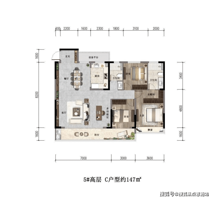 每一个户型都规划了很大的南向面宽和阳台。