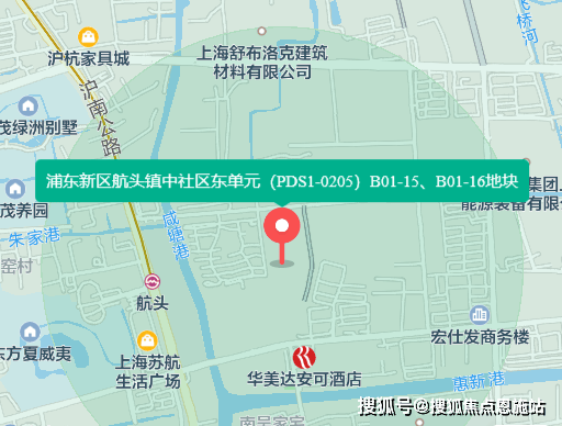 2022年9月23日,上海外高桥森航置业有限公司以底价240645万元竞得浦东新区航头镇中社区东单元(PDS1-0205)B01-15、B01-16地块,房地联动价4.83万/㎡!