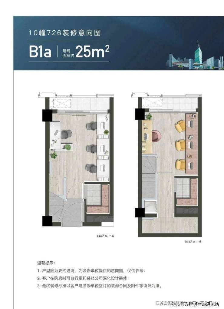 光合空间层高分别约为 4.2米和 4.79米,建筑面积分别约为 25㎡和 35㎡。如此多变的空间,未来业主如委托第三方装修公司,打造成 loft或 双钥匙,则上下双层都带平台,剔透如一只水晶盒子。整个市面上,带平台的商办小户型本就非常稀少。