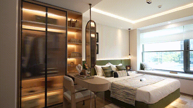 项目精装限价2.75万/平,细腻纹理的全屋墙纸、岩板电视背景墙等;还有德施曼智能门锁、德国奢侈卫浴品牌汉斯格雅花洒龙头+杜拉维特盥洗盆+恒洁智能马桶组合,厨房有弗兰卡大单槽、方太厨房三件套,甚至配备了洗碗机,海尔中央空调、并且还有博世的地暖……