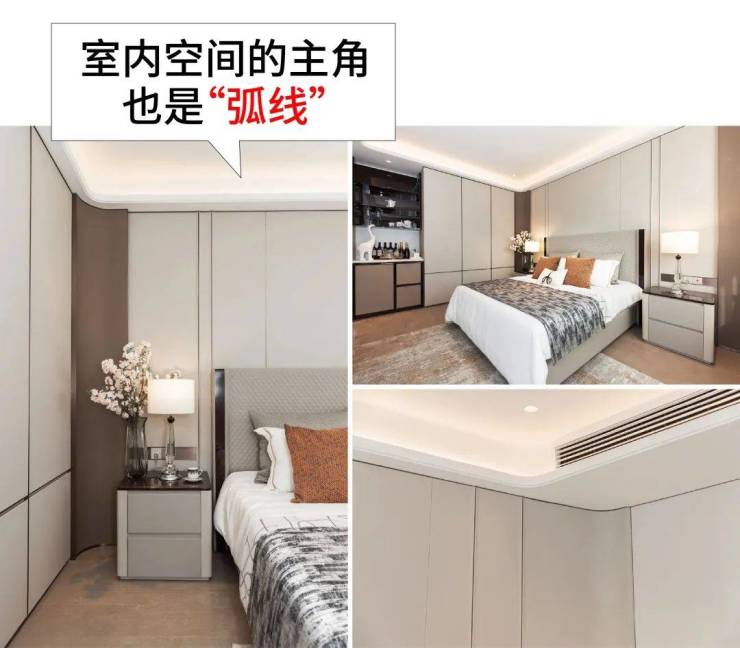 延续到室内,仿佛踏入了一个由精湛工艺与精妙设计交织而成的梦幻之境。工艺细节将设计理念完整还原,皮革的细腻质感、木饰面的温润纹理、石材的沉稳大气,这三种截然不同的材质,在工匠们的巧手下丝滑连接,整个空间形成一种高度统一的完整体。