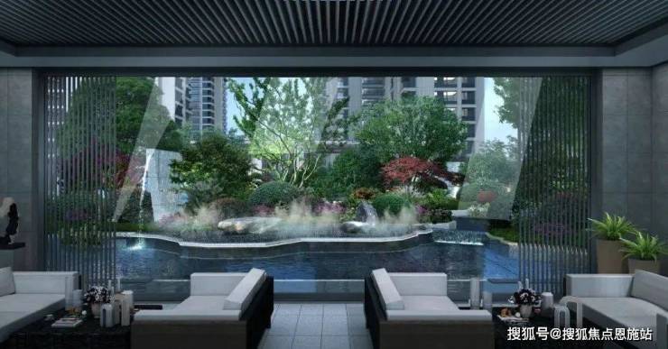 水是中式园林的灵魂,我们在东西两个地块的入口轴线上分别设置了两片水面,采用相对自由的岸线布置,假山穿插其中。