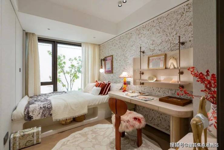 这样的尺度感和实用性,真的比一般建面约120㎡以上的宽绰3房更加惊人。当然,最让我觉得惊叹的是这个南向次卧,这个卧室里放下了一张双人床、两个床头柜、一个收纳柜、两个休闲座椅和小茶几。售楼处电话:400-780-7338√√【热线】