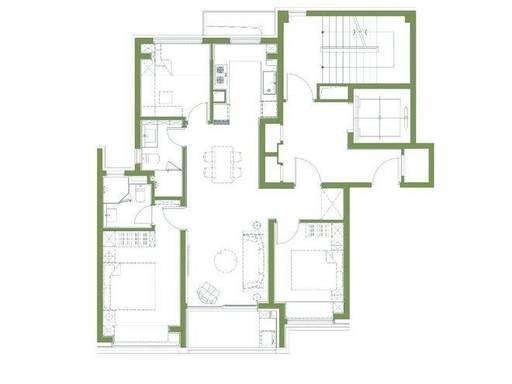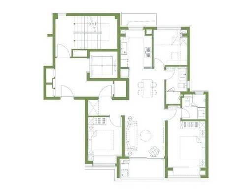 建面约 92-107㎡三房两厅两卫,作为刚需改善首选户型,采用三开间朝南经典布局,搭配 LDKB 一体化设计(客厅、餐厅、厨房、阳台贯通),无连廊设计保障室内采光与居住隐私,动静分区合理,空间利用率拉满,无论是新婚家庭还是首次改善,都能享受舒适从容的滨江生活。