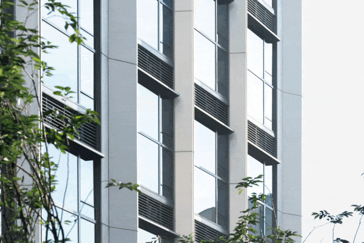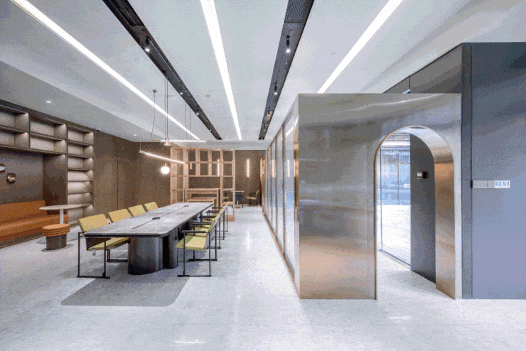 大面积玻璃+铝板的运用,锻造透明与浅灰色系的高级质感,举目望去,玻璃与天际交相辉映,呈现出轻盈通透的艺术美感,正如安藤忠雄所说,“让光线和风,为建筑表达”。