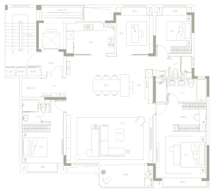 对于想要拥有更大主卧的客户来说,可以实现主卧套房一体化,或保留做成次卧,增加房间数量