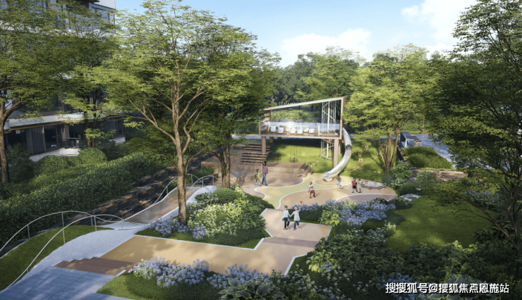 走进社区入口到中心庭院再到小区内部的儿童乐园,大量的公共空间带来多重生活场景的交织