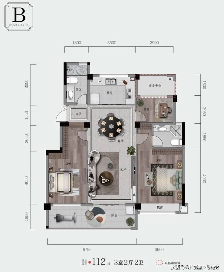 约112㎡户型点评:112方的户型,加上飘窗、阳台等赠送面积,占地约8.25方,得房率高达91%,入室开门处预留了储物间,约7.9㎡的空间很大U型厨房 阳台连通客餐厅与次卧,约12.1㎡的超大阳台空间 主卧拥有约16.7㎡的套房空间,衣柜动线分明