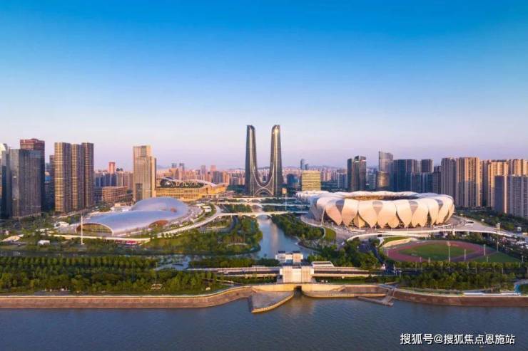 从“西湖时代”一路狂奔,到“钱塘江时代”再到“拥江发展”, 杭州世纪中心,鼎立奥体核心之上,以北斗七星、大小莲花,与北岸“日月同辉”、“天圆地方”交相辉映,众多地标集群正构筑杭州钱江岸线上璀璨夺目的“鎏金一英里”,成为杭州对话世界的一张烫金名片。