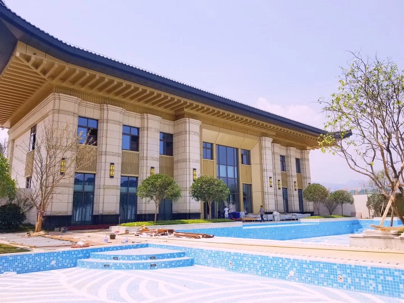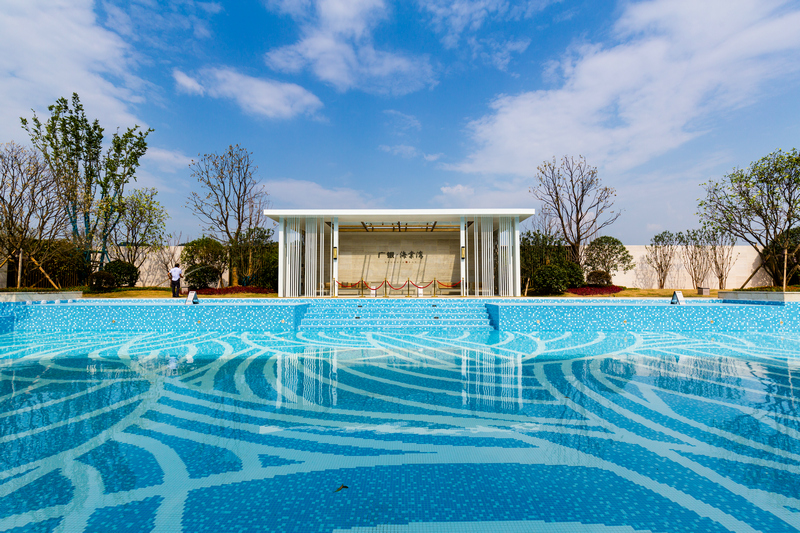 营销中心后面还设有休闲木平台、全龄泳池。泳池分为儿童戏水池与成人泳池两部分,双线并行,满足不同年龄层需求,无所顾忌地享受畅游之乐。