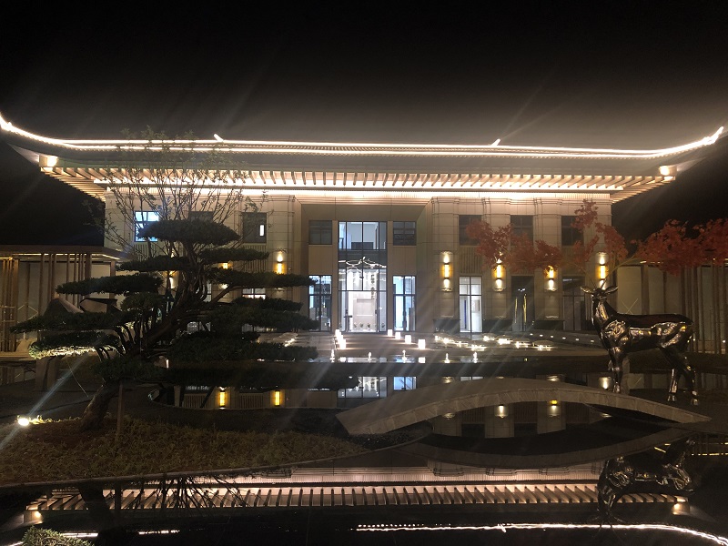 再从侧面看,对称的构造布局以及飞檐翘角,无不将新中式风格表达的酣畅淋漓。