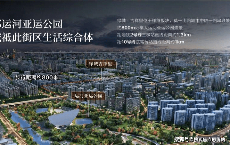 项目西南方向步行800多米可达运河亚运公园,占地约46.7万方,总建筑面积约18.5万方,是杭州主城区范围内,唯一一个集公园、场馆、商业于一体的综合性亚运会竞技场馆。亚运会结束后也将作为全民健身、景观公园、商业购物等大型多元化城市配套供市民使用。