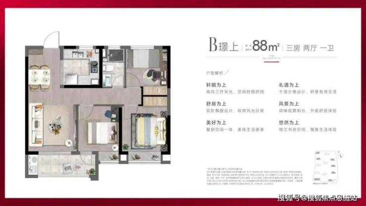 聆听Online青年对明媚阳光生活的向往,南向三开间采光,整个室内空间非常明亮通透,阳光洒落房间时,一切都了温暖的感情。