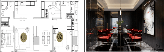 右侧U型厨房,更符合人体工程学,可多人同时操作,中西双厨,餐厨一体。